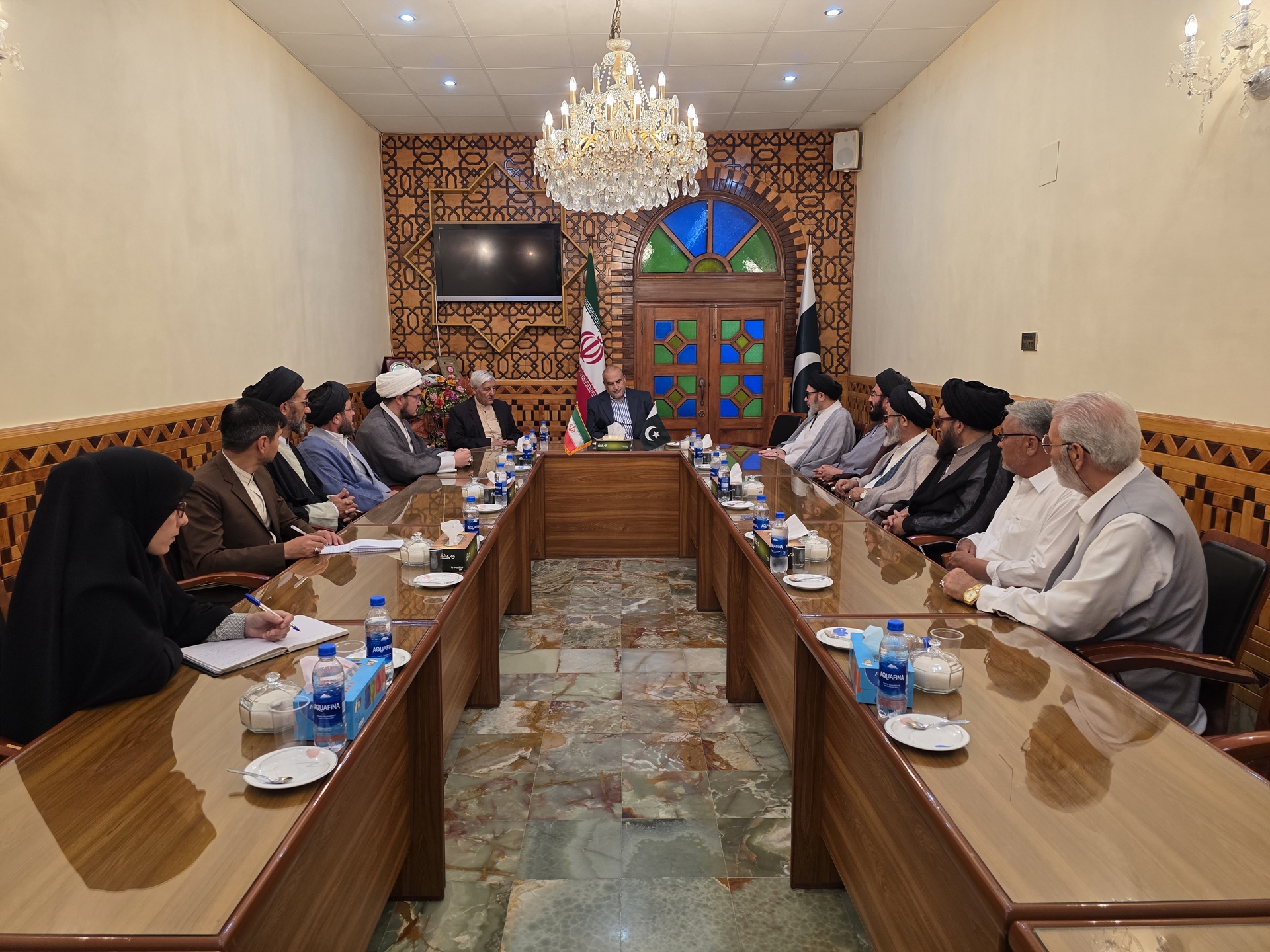 علامه سید هاشم موسوی، علامه سید حسن مبلغ و علامه علی حسنین الحسینی ائمه جمعه شهر کویته به همراه آقایان علامه سید اکبری، علامه سید جواد حسینی، علامه سید محمدرضا اخلاقی، علامه سید محمود حسینی وآقایان حاجی سرور و حاجی شبیر حسین دو تن از برگزارکنندگان مراسم ازدواج دسته جمعی جوانان اهل تشیع در تاریخ 15 اردیبهشت 1404 با جناب آقای علیرضا رجائی سرپرست سرکنسولگری ایران در شهر کویته دیدار کردند.